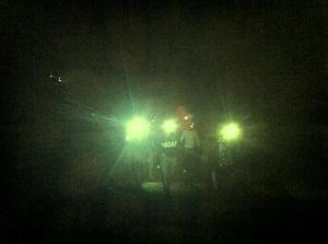 Prop de la Cabana d’Es Cavau comencem a tenir la companyia del bestiar que hi fa nit, vedells i cavalls que es sorprenen que a aquella hora hi hagi un grup “d’emprenyadors” que els pertorba el descans. Passem discretament, apagant alguns frontals i mirant de fer el menor soroll possible. Ens sap una mica de greu.