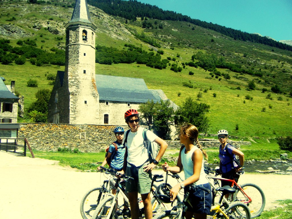 Gaudim de la baixada; la veritat és que el recorregut és molt maco i senzill de baixada. Arribem al poble de Montgarri i continuem fins al seu Santuari, on reposem una mica, bevem i de nou ens posem els cascs i agafem les nostres bicicletes per tal de fer la tornada.