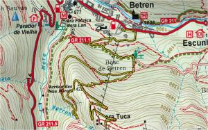 Desfem el camí per la pista fins agafar el sender que baixa sotabosc fins retrobar novament la pista forestal. Ara travessem algun prat nevat per fer via i arribem a Betren. Novament al cotxe ens refem i bevem. Una caminada plàcida i fàcil que ens ha relaxat després d’intensos dies fins arribar a aquestes dates de Nadal.
