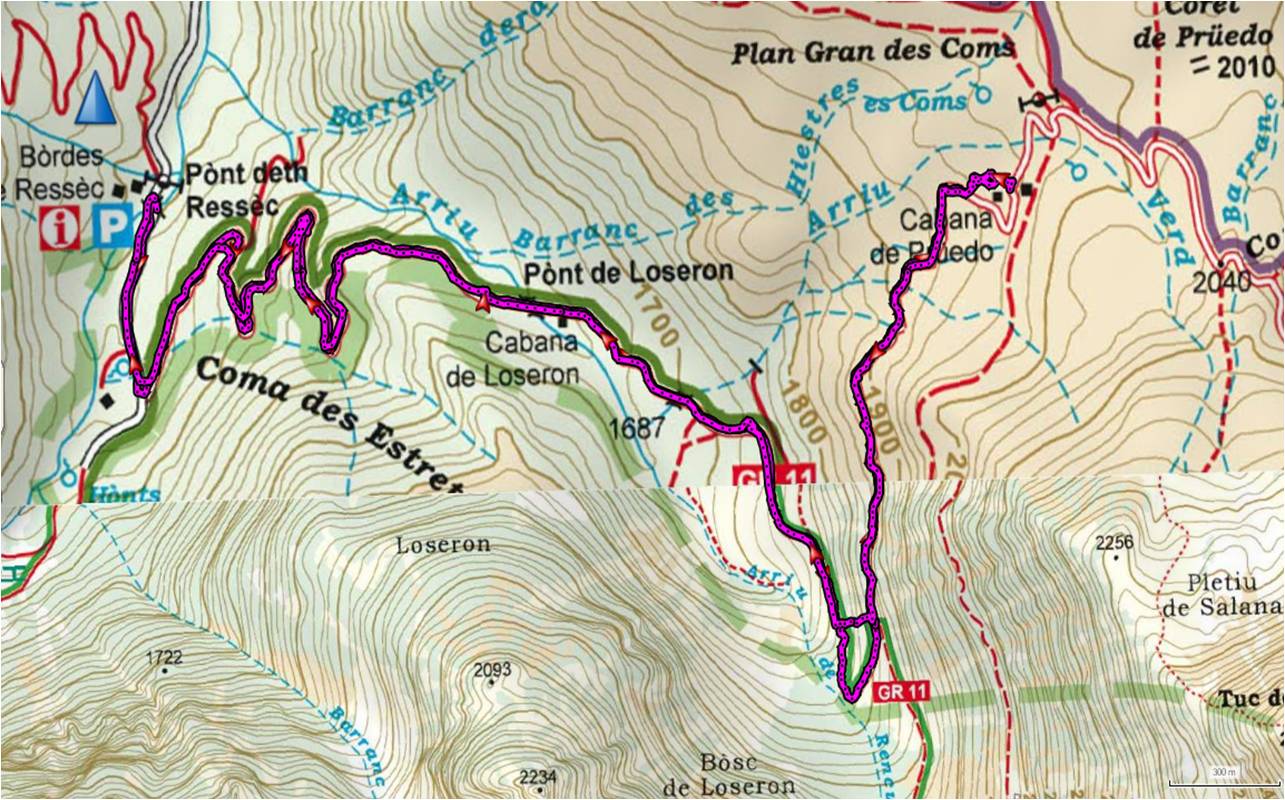 Aquest tram transcórrer per un paratge bucòlic, travessant el bosc d’immensos avets que donen una frescor i ambient humit fins arribar a la cabana de Loseron. En aquest punt la vall s’obre a grans prats a banda i banda sota el massís del Montardo i el Tuc de Salana.
