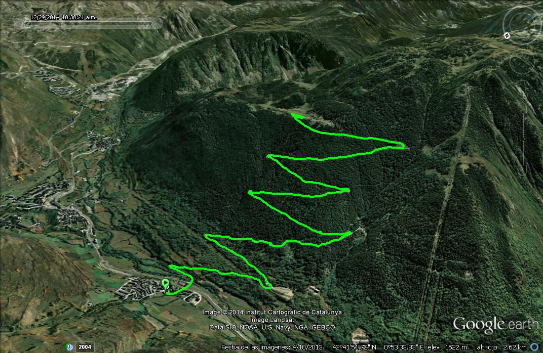 La història no es especialment fantàstica, doncs el repte és serpentejar per una pista d’uns llargs de kilòmetre en kilòmetre i amb el repte d’anar fent traça. No ens aventurem amb dreceres, doncs el bosc és dret i acumula avui ingents gruixos de neu.