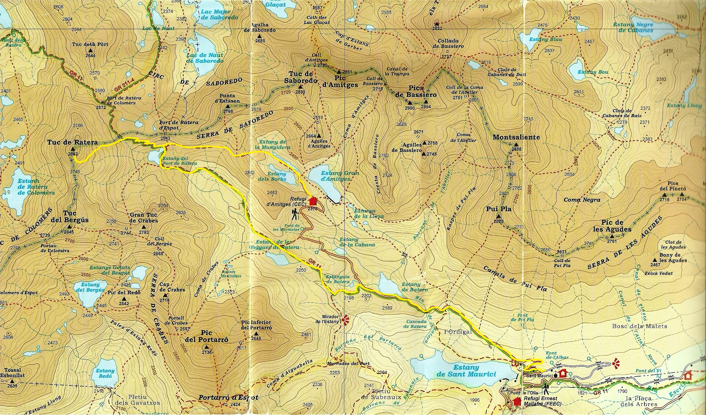 De tornada seguim del GR-11 des del Port de Ratera de Colomers fins a l’Estany de Sant Maurici sense dirigir-nos al Refugi d’Amitges passant per l’Estany de les Obagues de la Ratera i el preciós l’Estany de la Ratera.
