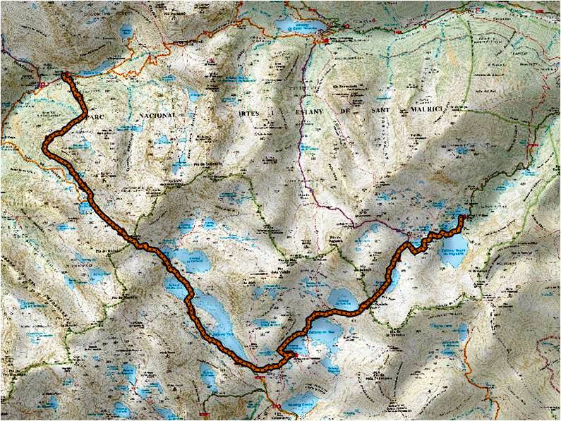 Encarem el darrer esforç assolint el Còth de Sendrosa per arribar novament al punt de partida. Baixem als llacs i pugem fins al Coret del Clòto (2.199 m.) i baixem sense embuts fins al Lac Major de Colomers. Ja al refugi i després d’autosegellar-nos a la casella final de la nostra molt preuada fitxa, ens fotografiem i abracem.