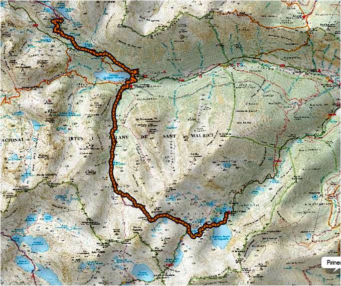 Continuem motxilles a esquena i voregem el gran llac de Colomina, l’Estany de Mar i encarem el Pas de l’Ós. Un esforç contundent que et situa sobre l’Estany de Saburó. Aquí retrobem grup, el alemanys, els de Flix… ja que algun corriol et pot despistar, però de seguit trobem les marques del GR-11.20 que voreja el llac passant per un caos de roques que passem sense massa complicació i assolim la Collada de Saburó (2.667 m.). El Tuc de Saburó a l’esquerra i el Pic de la Mainera a la dreta. Nosaltres avall sense complicacions fins arribar al bucòlic paratge del Refugi Josep M. Blanc (2.318 m.).