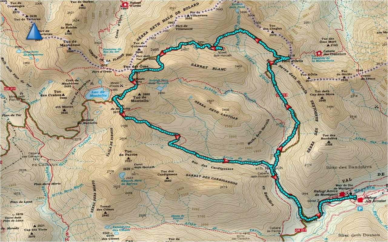 Dificultat: Fàcil, considerant però la distància i desnivell acumulats, transcórrer en territori força solitari, irregularment marcat i força feréstec propi d’aquesta zona de la Val d’Aran.
