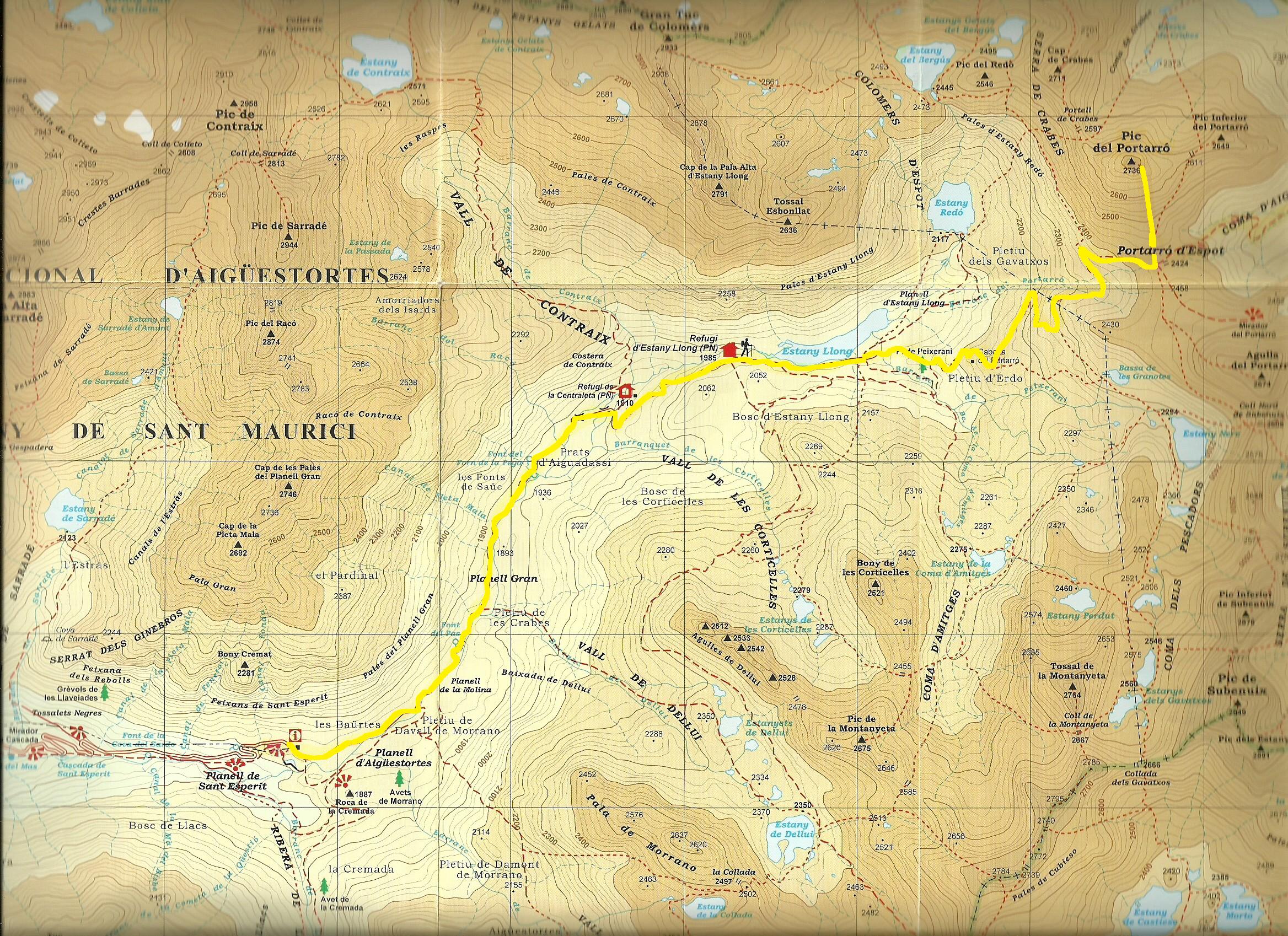 Tot i l’hora i el dia molt assolellat, aviat es dissol el petit grup de caminadors que hem pujat. Avancem per la pista travessant el paratge d’Aigüestortes, que entenem clarament perquè és Parc Nacional, doncs la seva bellesa és sublim. Poc a poc i sense pausa anem avançant i passats els Prats d’Aiguadassi identifiquem el trencall del sender cap al collet de Contraix, que malgrat el diminutiu s’intueix dur de pelar. Nosaltres però, seguim per la pista que ens porta en poc temps al Refugi d’Estany Llong (1.985 m.) i tot seguit identifiquem plenament l’estany, el Portarró i el Pic al fons.
