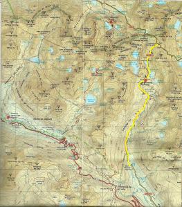 Després de parlar amb el guarda del refugi, seguim el camí que recórrer la vora del llac deth Miei en direcció al de Naut. Aquest és un paratge molt bonic i contrasta el color de les aigües transparents dels estanys amb la verdor de l’herba que els envolta. Fem un petita parada per menjar i beure una mica, dubtem en desviar-nos una mica del sender cap a l’esquerra per veure de prop el llac Major de Saboredo i el de Naut de Saboredo, però decidim continuar preveient que els visualitzarem en la mesura que enfilem el port i així continuem el camí cap al Port de la Ratera sense deixar el GR-211.4.