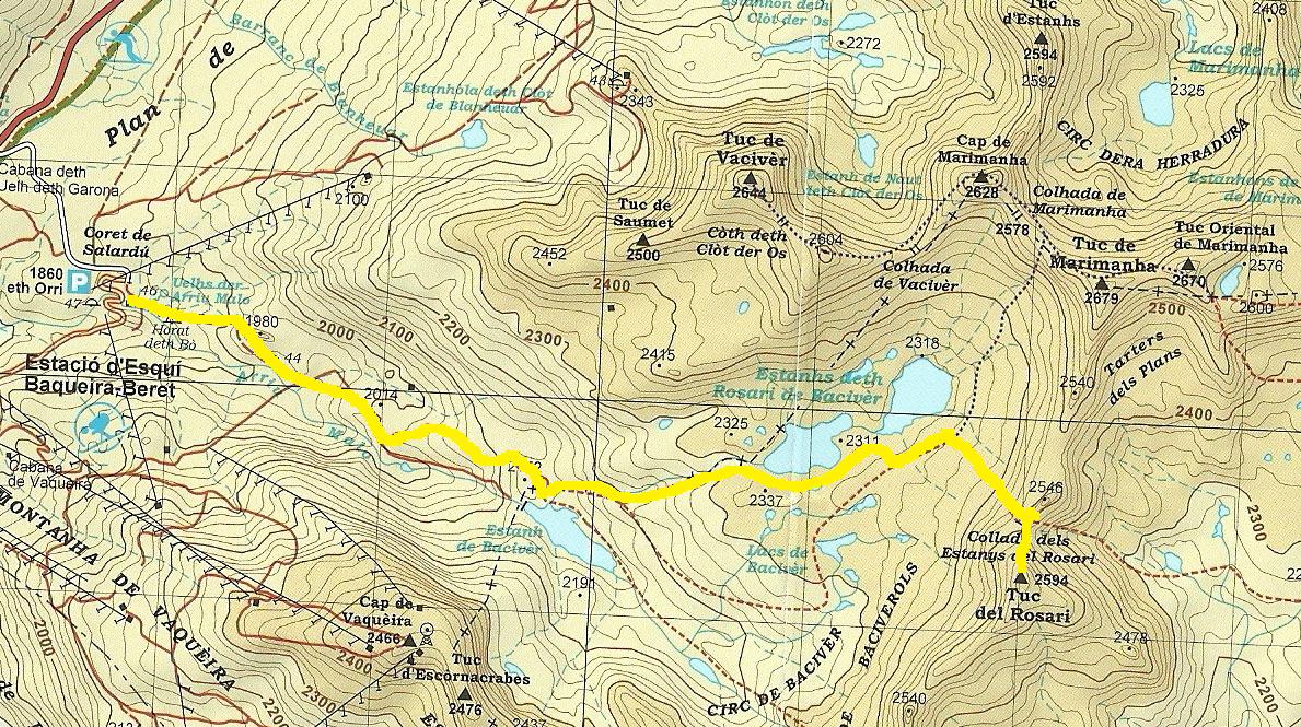 Un matí del primer cap de setmana de juliol, ens llevem després d’haver nevisquejat durant la nit però ara amb sol radiant. Mantenim els plans. Pujarem fins el pla d’Orri ( 1.860 m.) per arribar als llacs del Rosari i si fa bo intentarem el Tuc del Rosari.